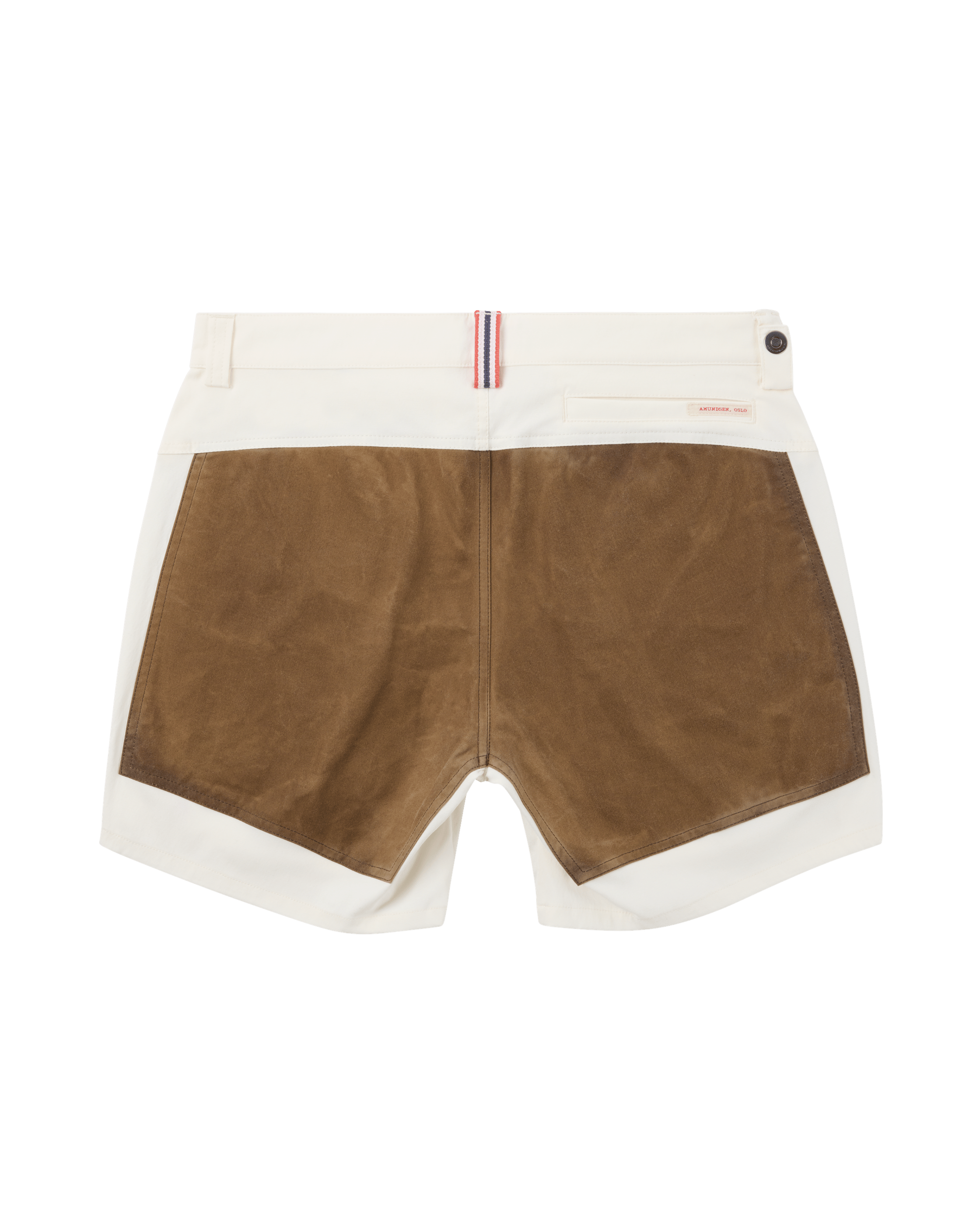 Typische Amundsen Details wie die rote Watch Pocket und die seitliche Werkzeugschlaufe machen die Shorts nicht nur funktional, sondern auch optisch einzigartig.