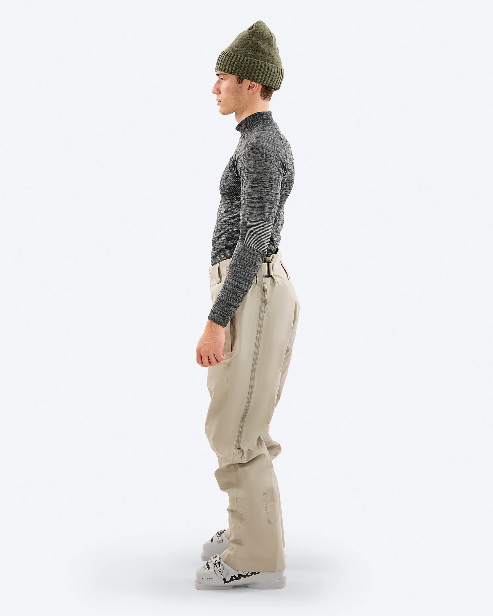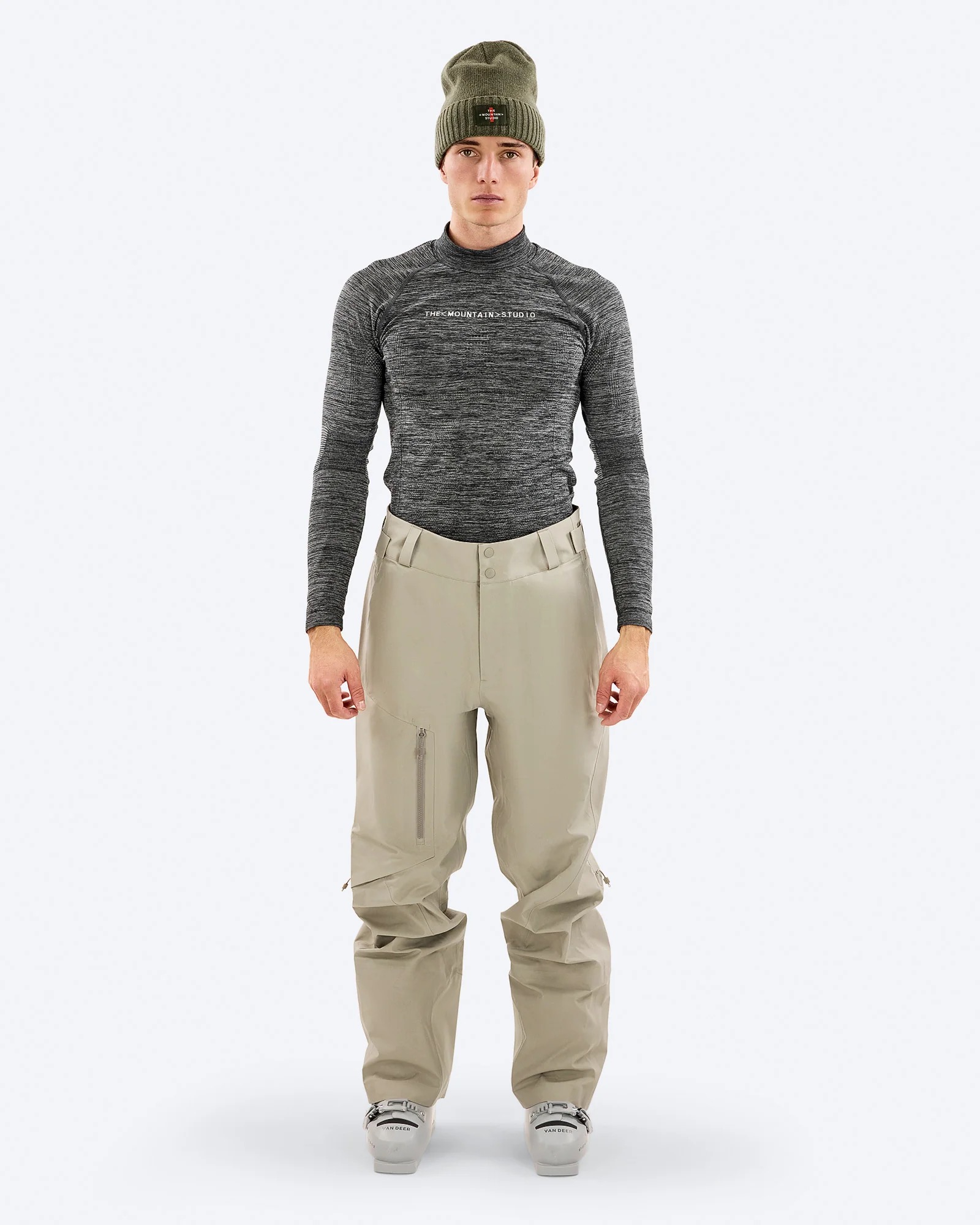 The Y-1 HD Three-Layer GORE-TEX® Pro Shell Pant from The Mountain Studio is specially designed for demanding alpine environments. We opted for the robust, hard-wearing 150 denier GORE-TEX® material that can withstand the extreme conditions of skiing, snowboarding and ski touring. The Gore technology makes it durably waterproof, completely windproof and extremely breathable.The Y-1 features an innovative 3D adjustable waistband construction to optimize fit and comfort. The back of the waistband has a thin, flexible barrier layer in Dupont Sorona® insulation for extra warmth and comfort in the lower back area. The Sorona® is a breathable, lightweight, partially plant-based insulation that is perfect for active wear.Not only are we at The Mountain Studio avid skiers ourselves, but we also have many years of experience in designing and manufacturing well-fitting, functional and skiable pants. The Y-1 HD is no exception. Materials Y-1 HD Three-Layer GORE-TEX® Pro Shell 3-layer GORE-TEX Pro 150 denier shell, 92% polyamide, 8% elastane Durable water repellent (DWR) Laminated Cordura® abrasion resistance 100% polyamide Insulation barrier in Dupont Sorona® 100% polyester Features Ergonomic pant construction to guarantee freedom of movement 100% taped 3-layer GORE-TEX® Pro provides ultimate waterproof, windproof and breathable protection 3D ergonomic waist adjustment system to bring the waistband close to the back and optimize the fit Two pockets on the legs Extra long ventilation zippers Laminated Cordura® abrasion resistance, 600D All zippers with Aquaguard® technology Handwarmer pockets Embroidered vertical brand logo Repair kit included