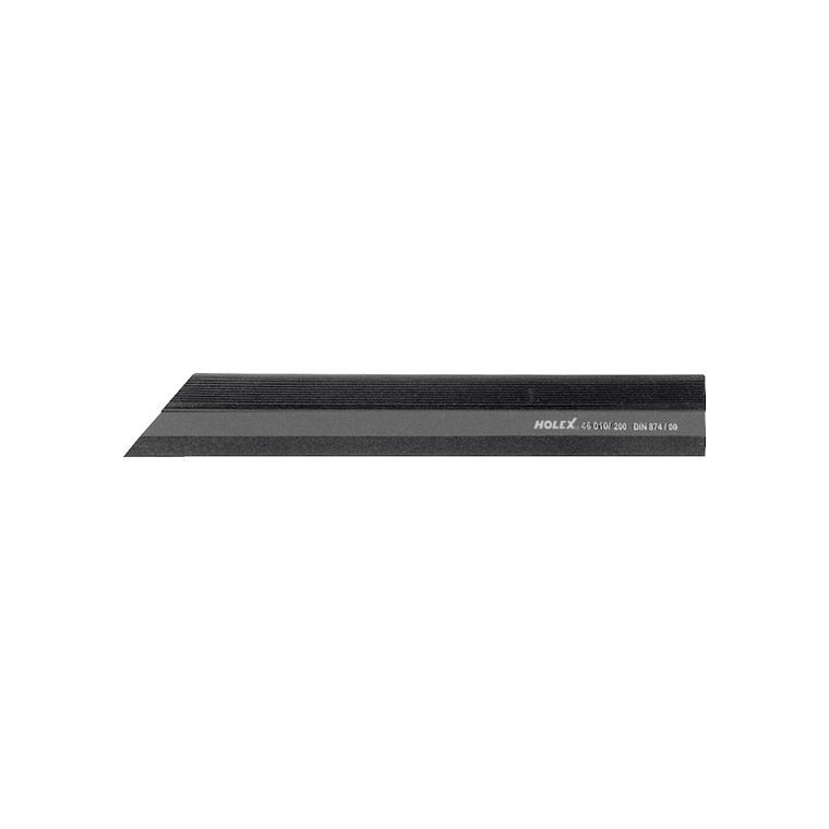 Hardened, ground and finely lapped hair measuring edge. Wedge-shaped cross-section with pointed spout for testing in corners, grooves, recesses etc. With plastic insulating handle to protect against hand heat.