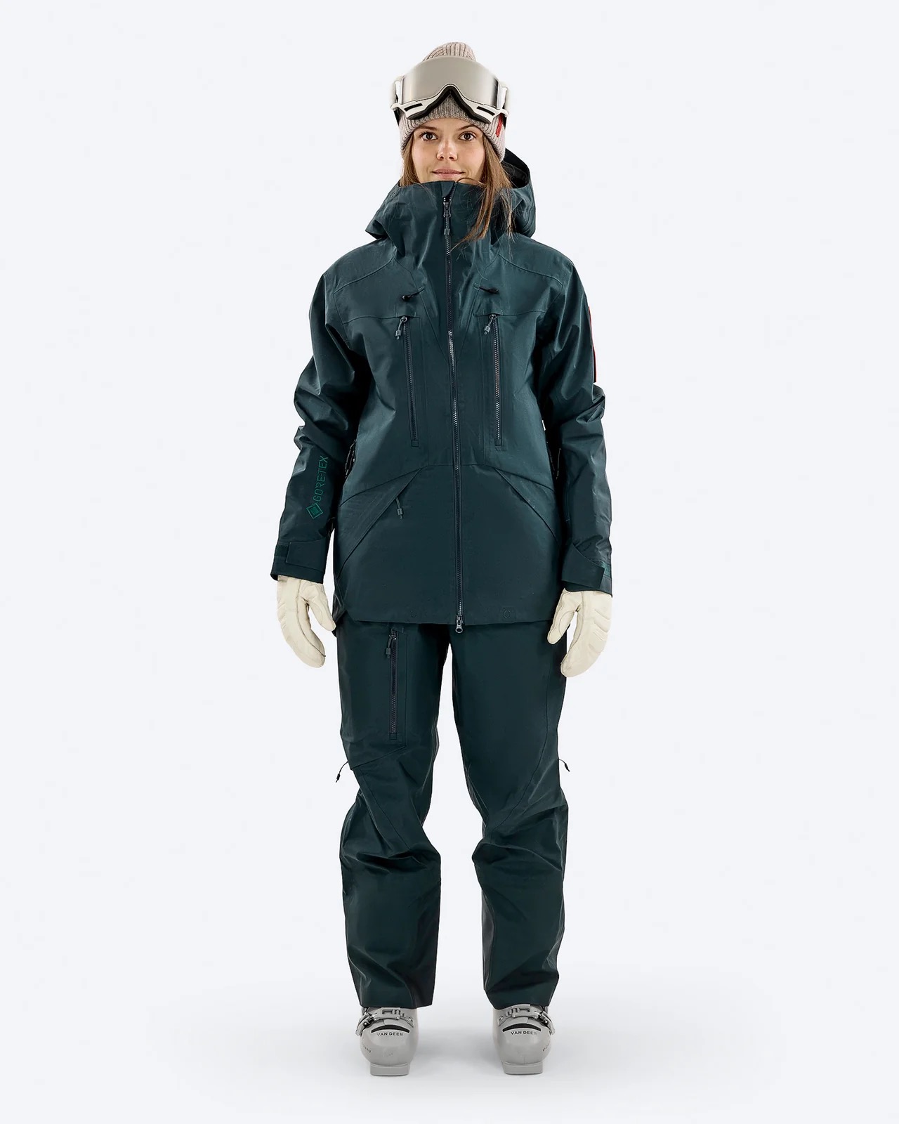 Das GORE-TEX ePE 3-Lagen-Gewebe schützt dich zu 100 % vor Wind und Wasser und bleibt dabei angenehm atmungsaktiv. Ein weiches Flanell-Innenfutter sorgt für zusätzlichen Komfort, auch bei langen Tagen im Schnee. Zwei große Brusttaschen und zwei Fronttaschen bieten Stauraum für Karten, Snacks oder Handschuhe. Die helmkompatible Sturmkapuze schützt dich vor Schneefall und Wind, während Unterarm-Reissverschlüsse die Temperaturregulierung erleichtern. Das klare, funktionale Design in der Farbe Magical Forest unterstreicht die technische Performance und Vielseitigkeit dieser Unisex-Jacke.