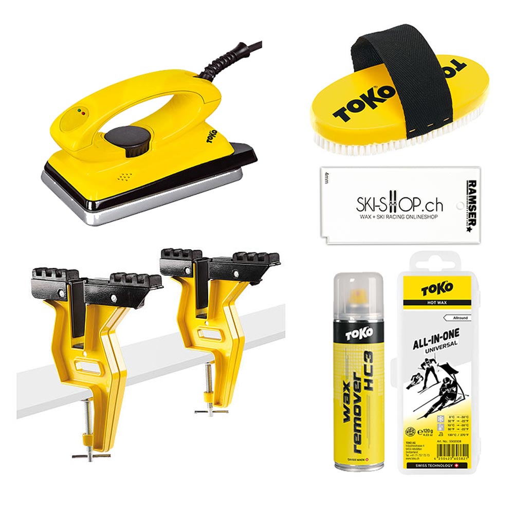 Toko Starter Paket Ski für den einfachen Einstieg in Die Welt der Profis. Mit einfachen Handgriffen können Sie Ihre Skis reparieren oder optimieren. Ab sofort ist das auftragen aller Waxe problemlos möglich mit dem Toko T8 Waxgerät. Einfache Stufenlose Temperaturregelung von 100 °C bis 160 °C. Mit der Toko Ski Vise Express (Skihalterung für Ihre Werkbank), fällt das ausbürsten mit der Toko Nylon Skibürste leicht von der Hand. Der im Set enthaltene Toko All-in-One Wax nimmt bei jeder Temperatur und Schneeverhltnissen sofort die gewünschte Geschwindigkeit auf. Gerne beraten wir Sie für weitere Produkte von Toko. Das Toko Wachs Set Starter beinhaltet: T8 800W Waxgerät Ski Vise Express Helterung Toko Skibürste Oval Nylon Skiwachs Toko All-in-One 0 - -30° Skistopper Band 4mm Plexi Blade Wax Remover HC3